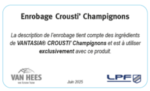 Inspiré des sous-bois et de la richesse des champignons, le Crousti’ Champignon LPF allie un croustillant doré à de subtiles saveurs forestières.
