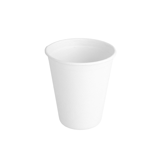Gobelet jetable en canne à sucre, 100% de pulpe de cellulose naturelle extraite de fibres de canne à sucre.